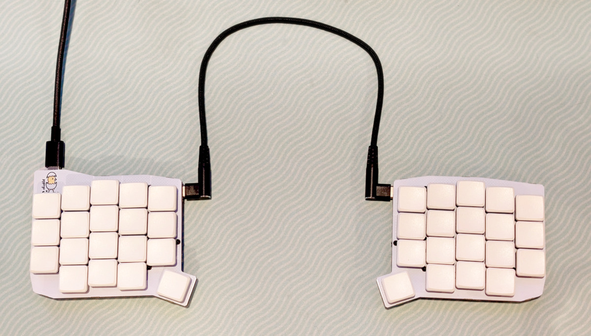 Connect the two halves of the board with a USB-C cable, using the ports on the inner edges of the halves.